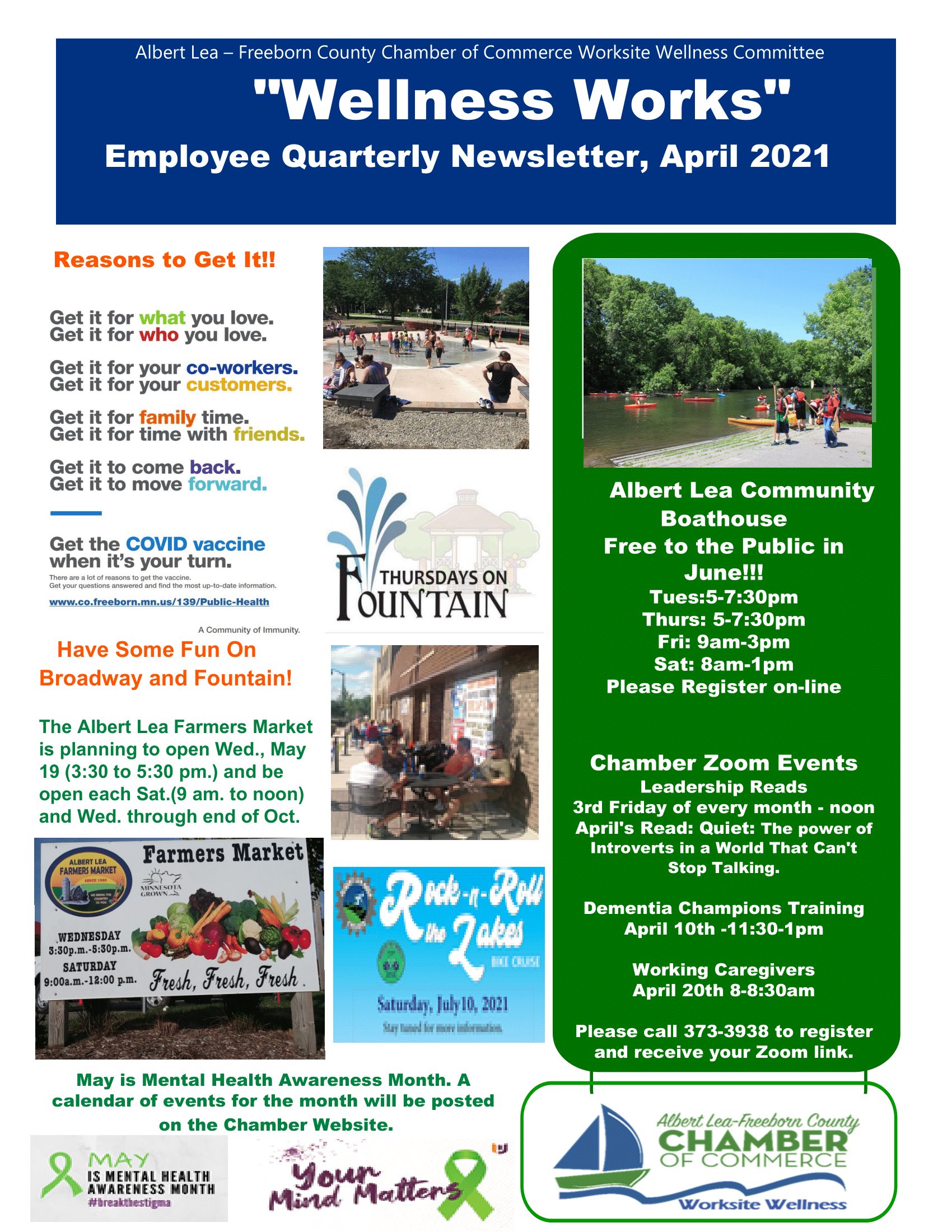 This committee is a spin-off of the Worksite Wellness Committee, focused solely on mental health. The purpose of this committee is to raise awareness of pandemic fatigue, reduce the stigma around mental health, to serve the diverse needs of employers and employees by providing information, activities, and services to increase emotional and psychological well-being. Meets: Third Thursday of each month from 7:30 am to 8:00 am.